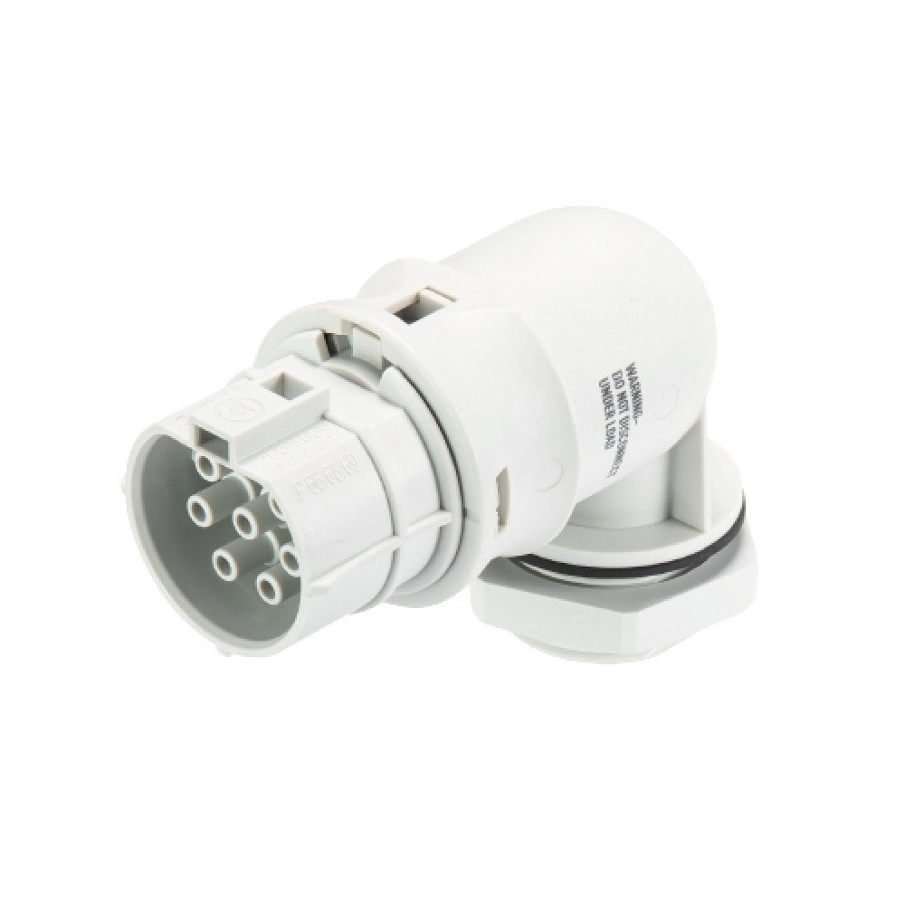 Розеточный разъем в панель, М25, 7 полюсов, угловой 90 гр., тип фиксации провода: винтовой, номинальные характеристики: 250/400V, 20A,цвет корпуса:белый,цвет контактной вставки: белый, серия RST Classic