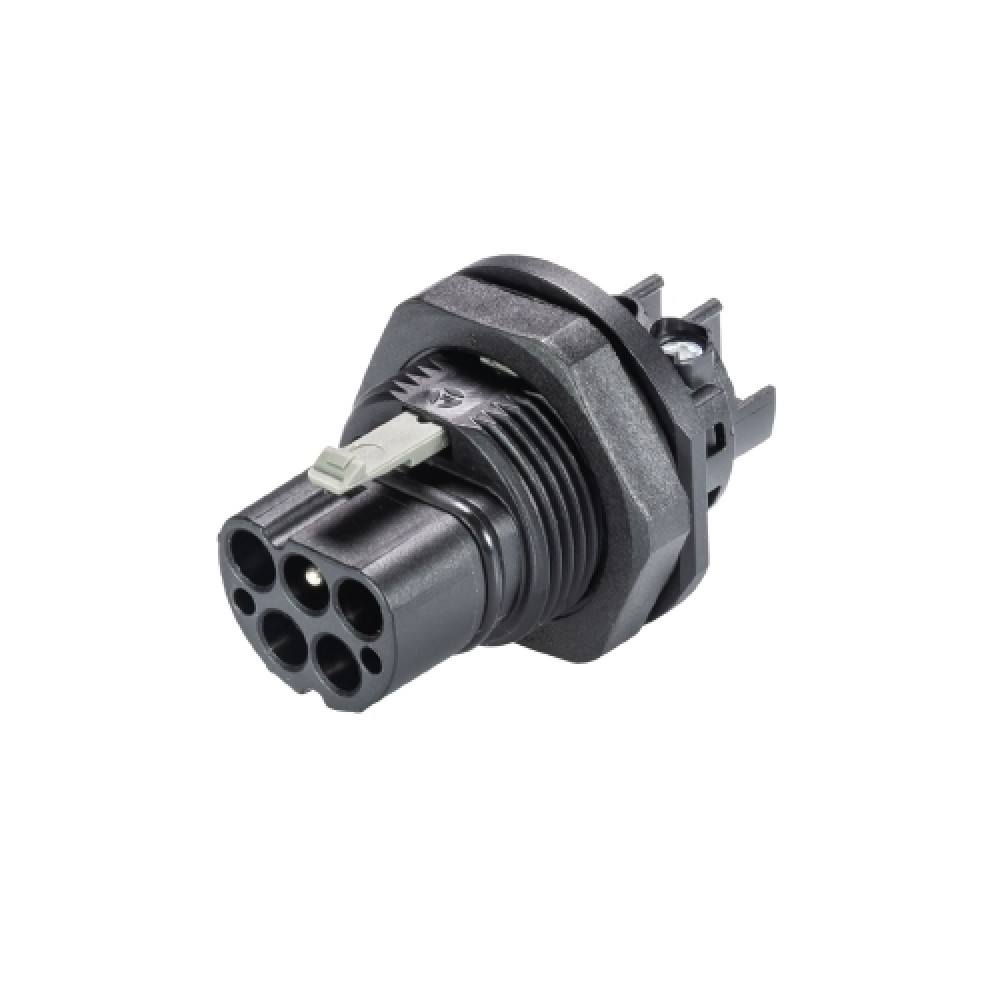 Вилочный разъем в панель, М25, 4 полюса, тип фиксации провода: винтовой, номинальные характеристики: 250/400V, 20A,цвет корпуса:черный,цвет контактной вставки: черный, серия RST Classic