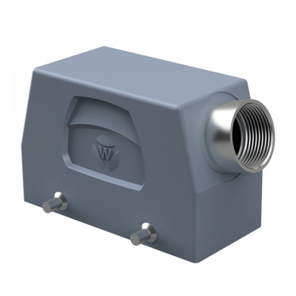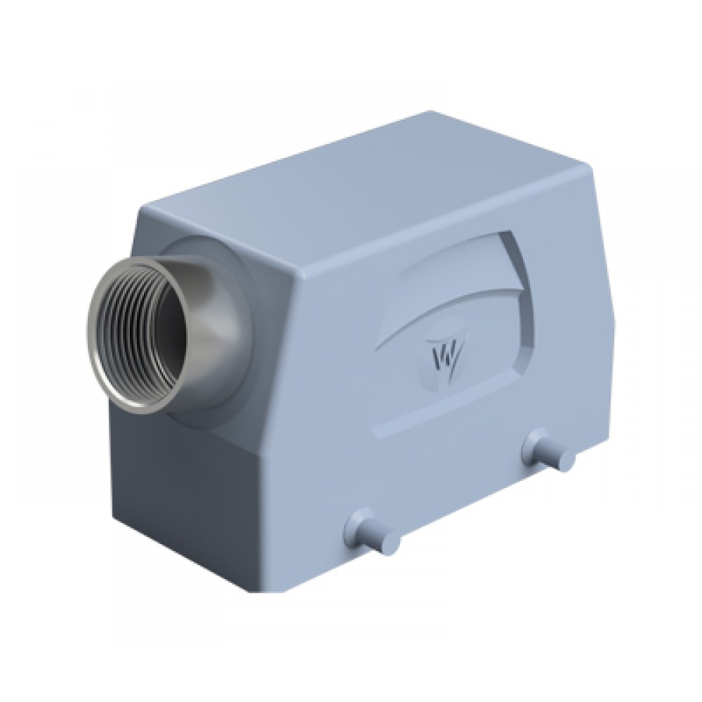 Крышка разъема 70.350.1635.2, Крышка разъема на кабель, типоразмер 16B, без уплотнителя, 1 отверстие с резьбой для кабельных вводов M25x1,5, с резьбовым удлинителем, с боковым расположением, без защелок (упоры для двух защелок), материал корпуса: алюминиевый сплав