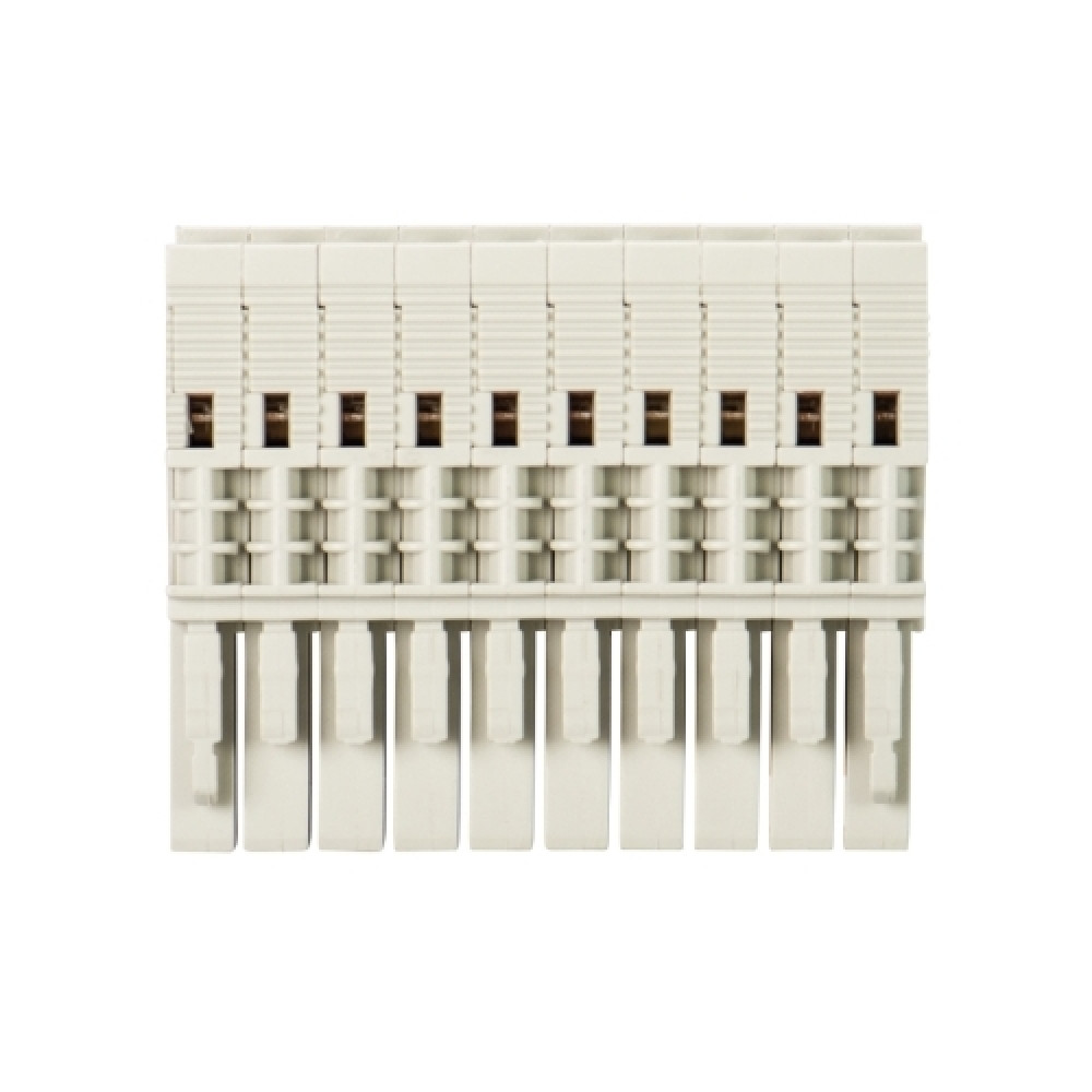 Разъем для клемм WBF 2,5-10, Разъем для клемм WKFN 2,5 F/P/F, 10 полюсов, тип фиксации провода: пружинный, номинальное сечение: 2,5 мм кв., 32A, 500V, шаг: 5 мм, цвет: серый