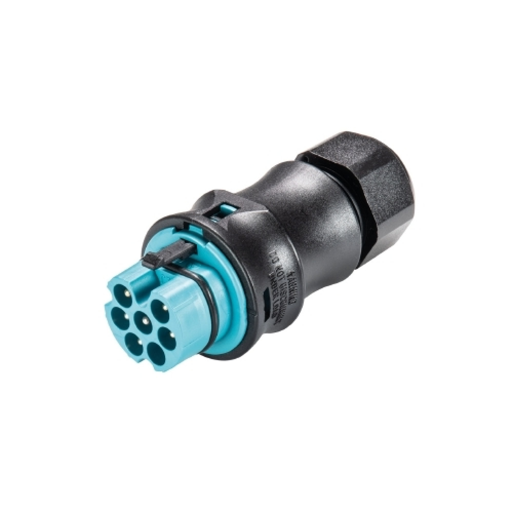 Вилочный разъем на кабель диаметром 6-10 мм, 6 полюсов, тип фиксации провода: винтовой, номинальные характеристики: 250/400V, 20A, цвет корпуса: черный, цвет контактной вставки: бирюзовый, серия RST Classic