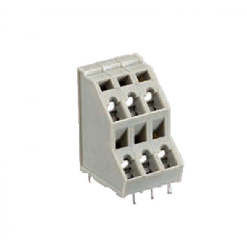 Клемма Wiecon 8291 EFK / 3 / 6 OB, Клемма, 2 этажа, подвод кабеля 45 град., на плату, шаг: 5.08 мм, 6 полюсов, фиксация провода пружинная, исполнение: без маркировки, 250V, 12A, цвет: серый