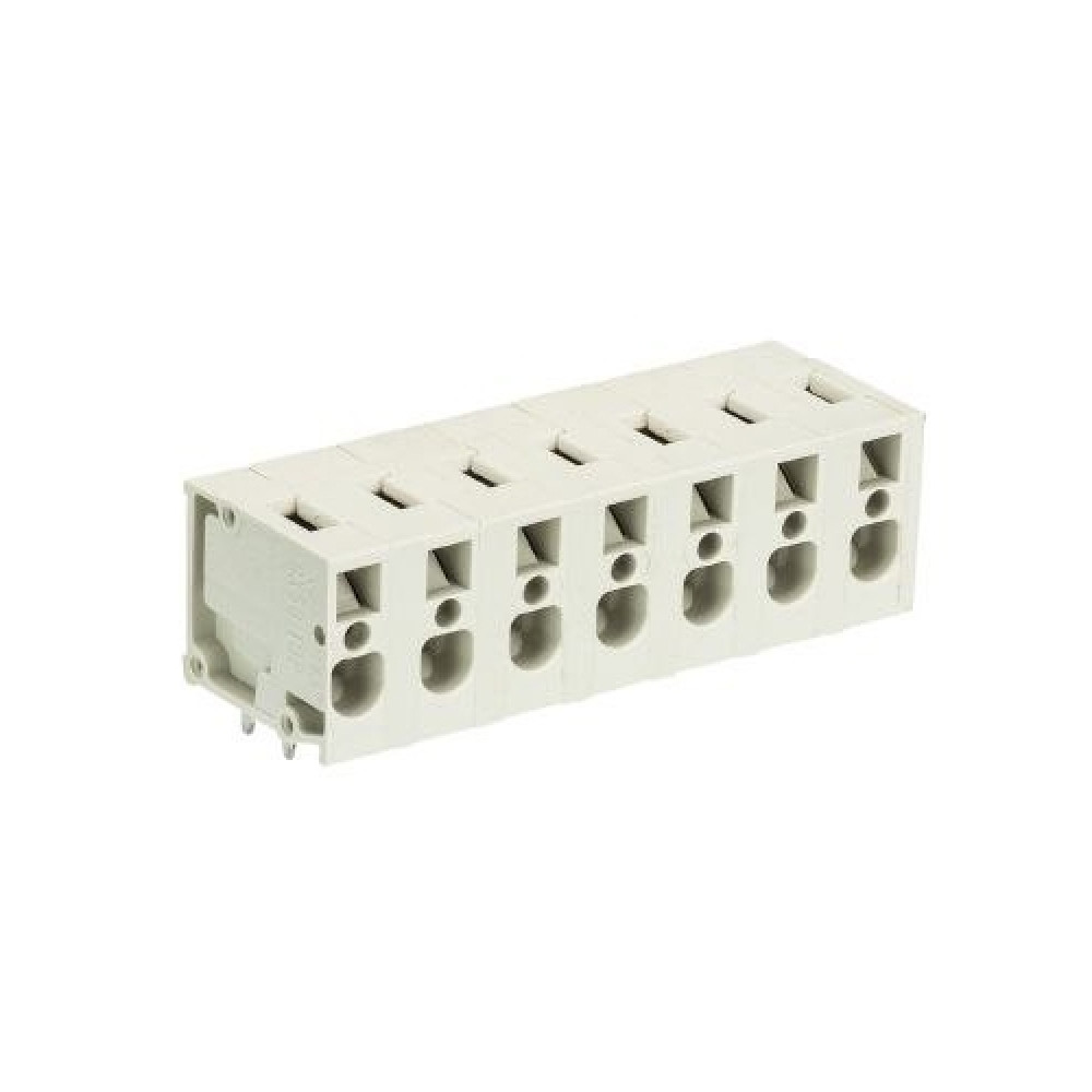 Клемма 8358/7 TOP H OB, Клемма горизонтальный подвод кабеля, на плату, шаг: 7 мм, 7 полюсов, фиксация провода пружинная, исполнение: без маркировки, 300V, 16А, цвет: серый