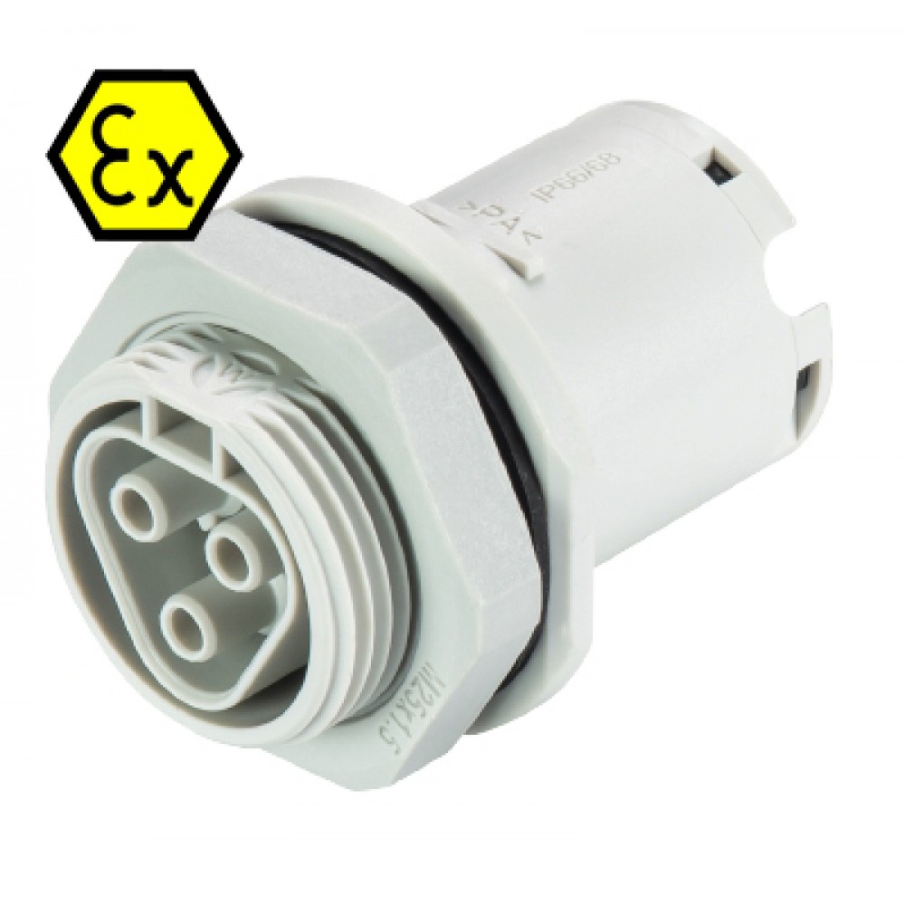 Разъем RST20I3FXB2 M01 GL, Взрывозащищенный розеточный разъем в панель, М25, IP68(69k), 3 полюса, пружинная фиксация провода, номинальные характеристики: 250/400V, 20A, цвет: белый, серия RST Ex