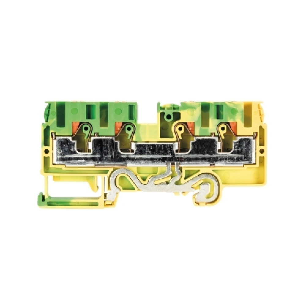 Заземляющая клемма, 4 точки подключения, тип фиксации провода: Push-in, номинальное сечение: 6 мм кв., 1000V, ширина: 8,2 мм, цвет: желто-зеленый, тип монтажа: DIN35