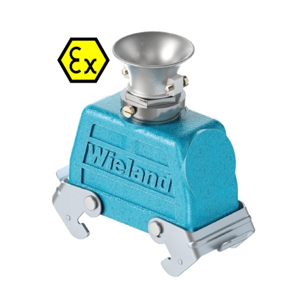 Крышка разъема Ex EX GOT GF24 M25 09IA Z3, Крышка разъема на кабель, типоразмер 24B, взрывозащита, без уплотнителя, 1 кабельный ввод M25x1,5, с разгрузкой на изгиб, IP54, с верхним расположением, с двумя защелками, материал корпуса: цинковый сплав