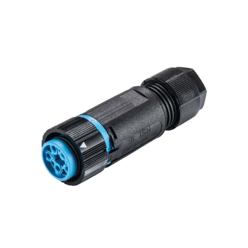 Розеточный разъем на кабель RST16I5 S B1 ZT6S H BL, Розеточный разъем на кабель диаметром 7,1-13 мм, 5 полюсов, тип фиксации провода: винтовой, номинальные характеристики: 250/400V, 16A, цвет корпуса: черный, цвет контактной вставки: голубой, серия RST MINI