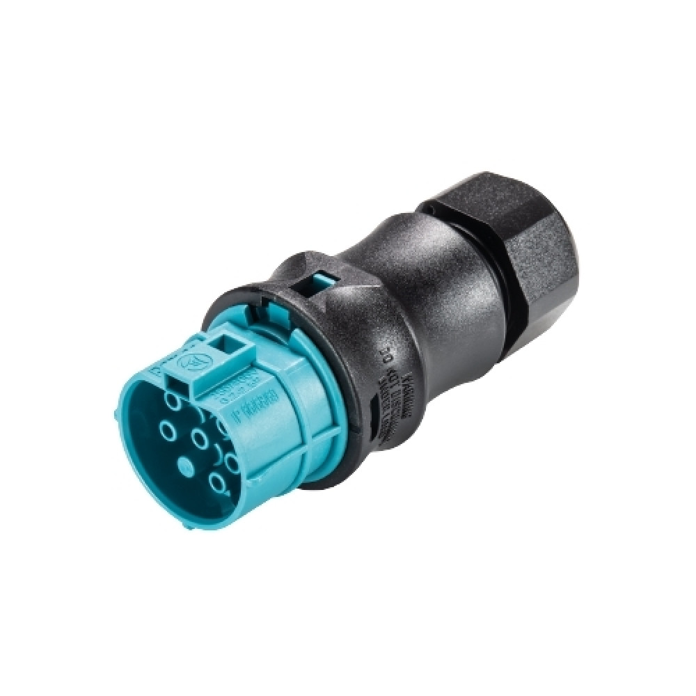Розеточный разъем на кабель диаметром 10-14 мм, 6 полюсов, тип фиксации провода: винтовой, номинальные характеристики: 250/400V, 20A, цвет корпуса: черный, цвет контактной вставки: бирюзовый, серия RST Classic