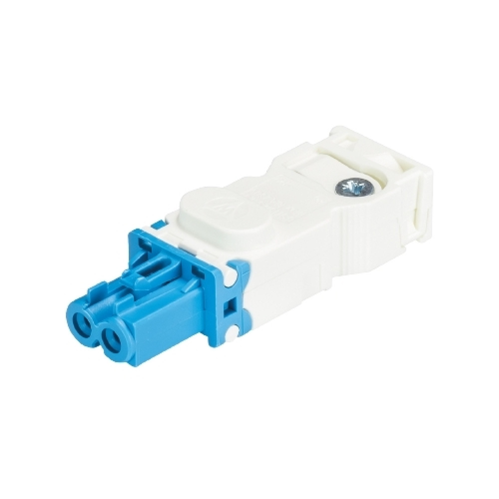 Розеточный разъем на кабель диам. 6 - 7,7 мм, 2 полюса, SELV, винтовая фиксация, номинальное напряжение: 50V, номинальный ток: 16A, цвет корпуса: белый, цвет контактной вставки: синий, серия gesis GST15i2
