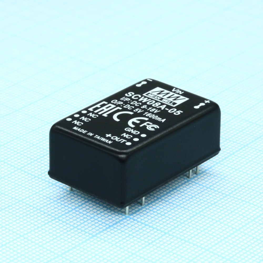 Доставка SCW08A-05 , Преобразователь DC/DC, 8Вт, вход 9…18В, выход 5В/320-1600мА, изоляция 1000В DC, DIP24 (31.8х20.3х12.2мм), -40…+71°С