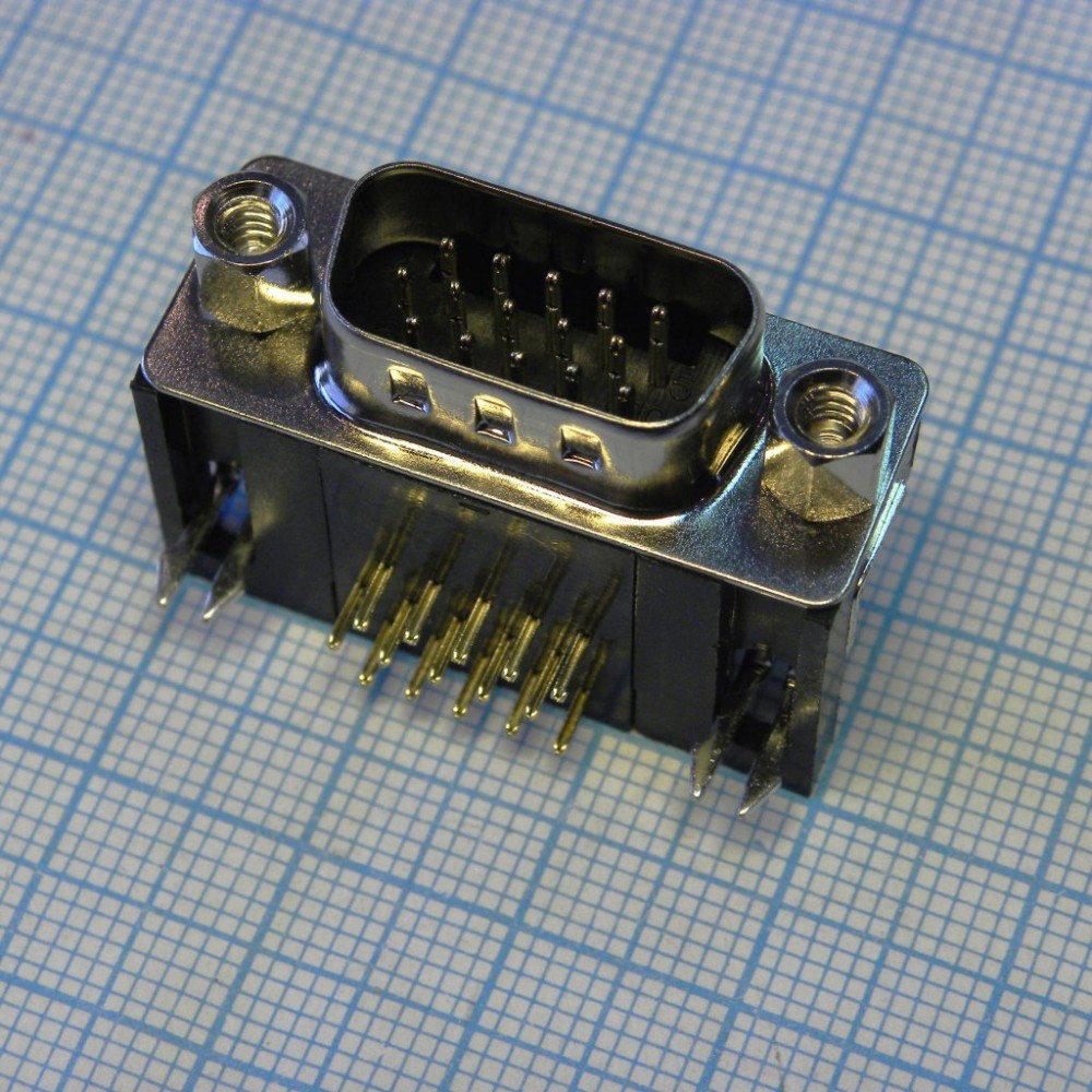 DHR-15M, D-SUB разъем высокой плотности, пайка на плату, прямой угол, вилка