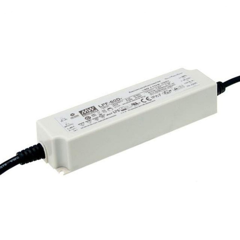 LPF-60D-48, AC/DC LED CC, 60Вт, вход 90…305В AC, 47…63Гц /127…431В DC, выход 28.8…48В/1.25A, ККМ, изоляция 3750В AC, в кожухе 162.5х43х32мм, -40…+80°С, IP67, димминг