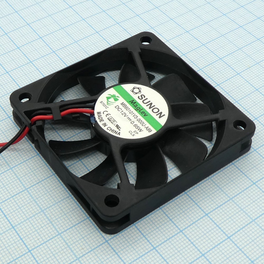 Вентилятор 12В 60х60x10мм V 3000об/мин 19,8м3/час, 21,5дБ (Recommended replacement: MF60101V3-1000U-A99)