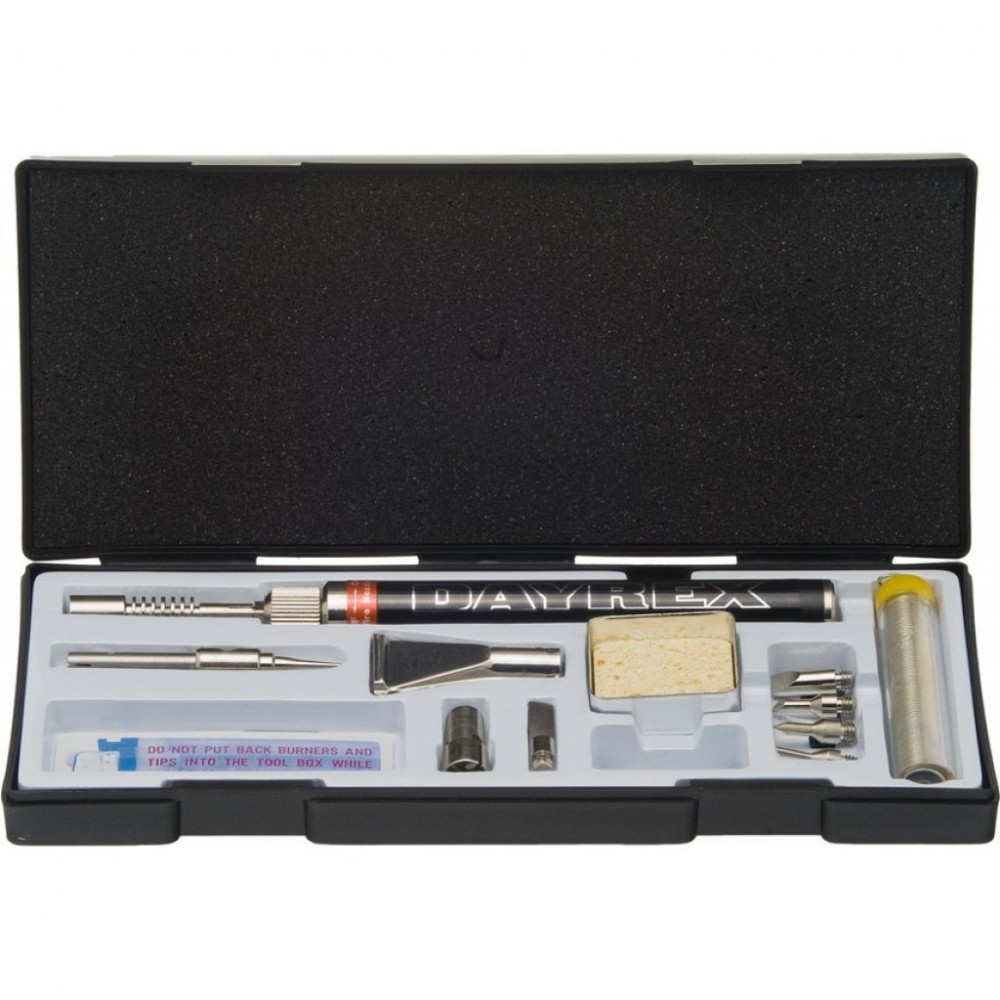 Удобная и практичная газовая горелка для ремонтных работ. Благодаря своим компактным размерам ее применяют при различных пайках в труднодоступных местах. Особенно горелка популярна в авторемонтных, ювелирных, монтажных мастерских.Конструктивные особенности модели позволяют работать при любых погодных условиях. Изготовлена из высококачественных материалов. Качественная сборка, простота и надежность конструкции обеспечивают безотказность, безопасность и долгий срок службы изделия.Горелка обладает повышенной функциональностью благодаря дополнительным насадкам