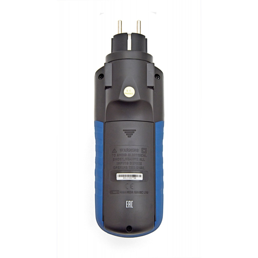 Корпус и батарея. Ударопрочный корпус снабжен прорезиненными боковыми элементами, что снижает риск выскальзывания устройства из рук. Измерения проводятся встроенной штепсельной вилкой — для работы не потребуется подключать дополнительную гарнитуру или кабеля. Тестер автоматически отключается после 50 секунд бездействия — разумный расход элемента питания.