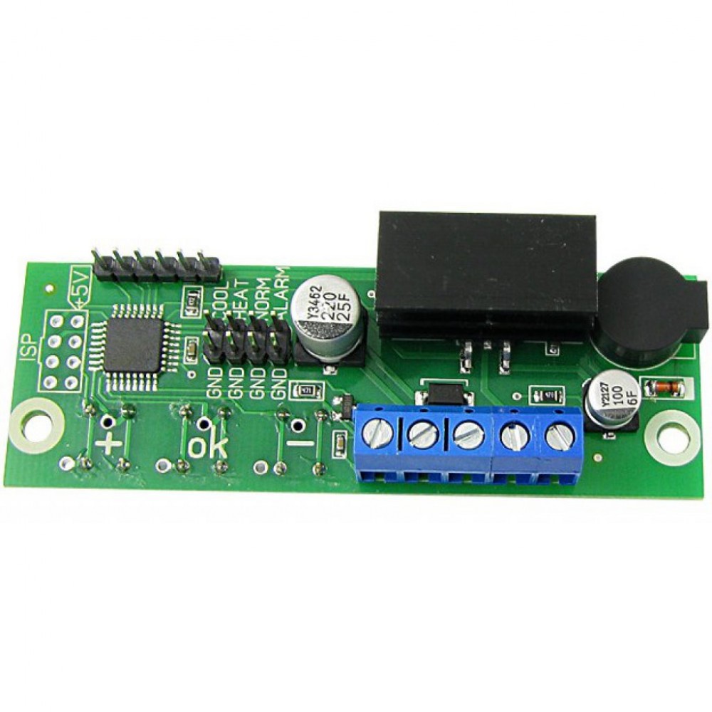 Встраиваемый модуль для сборки устройств мониторинга температуры с помощью датчиков DS18B20 (до 32 шт.), отображает показания каждого датчика на своем дисплее. Для сборки устройства необходимо к соответствующим контактам на модуле подключить датчики температуры DS18B20, дисплеи SHD0032 по количеству датчиков и питание (см. инструкцию). На печатной плате имеются контакты для подключения внешних устройств.