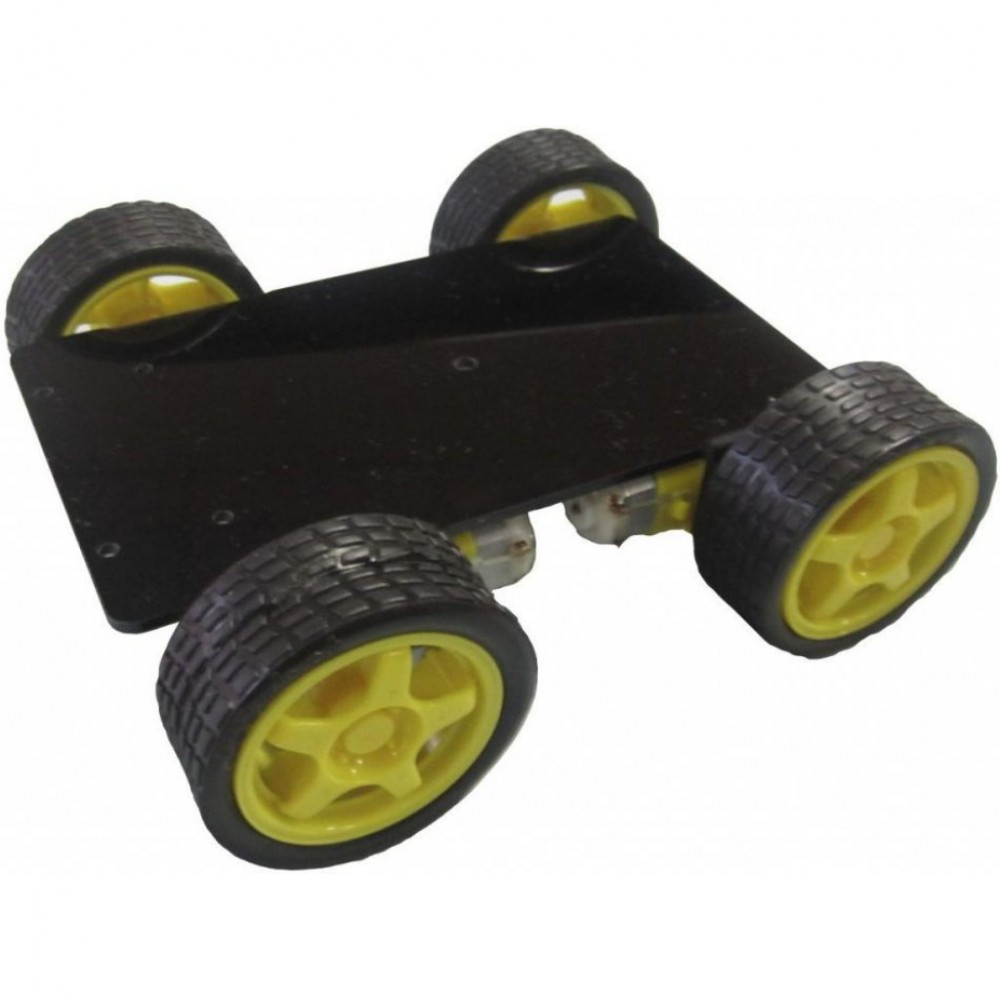 Шасси для построения мобильного работа. Платформа выполнена из ударопрочного акрилового стекла. Применение материала, легко поддающегося обработке, позволяет «навешивать» различные датчики, исполнительные устройства, контроллеры в любом удобном для монтажа месте платформы. В состав шасси входят четыре колеса и четыре электромотора с редуктором, платформа, крепежные элементы. Колеса обуты в полиуретановые шины, что обеспечивает очень качественное сцепление с поверхностью. Платформа выполнена из ударопрочного акрилового стекла. Применение материала, легко поддающегося обработке, позволяет «навешивать» различные датчики, исполнительные устройства, контроллеры в любом удобном для монтажа месте платформы.