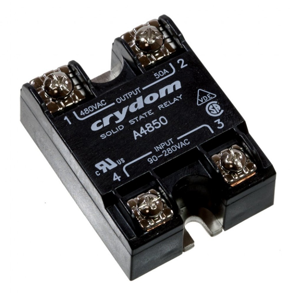 Доставка A4850 , Реле твердотельное для коммутации переменного тока 530В 50А, вход AC 280В 10мА, изоляция 4кВ, схема перехода через ноль, нормально разомкнутое, -40...80°C