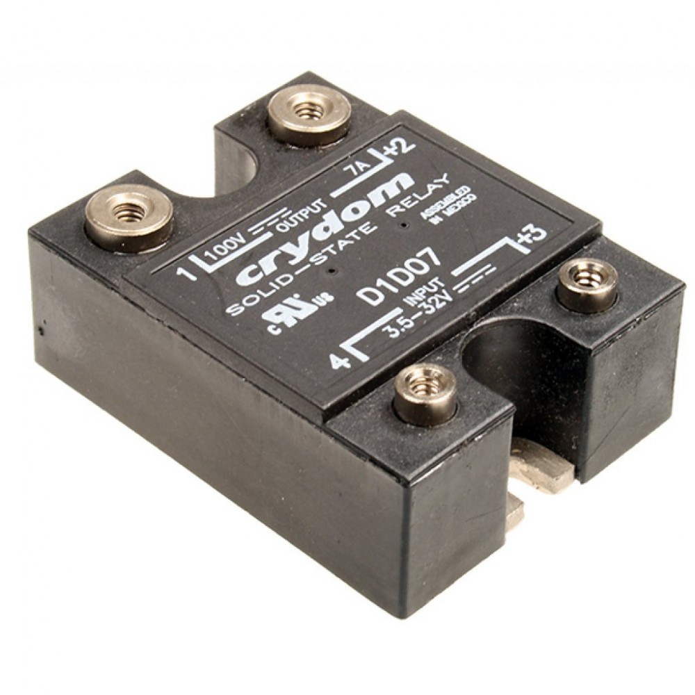 D1D07, Реле твердотельное для коммутации постоянного тока 100В 7А, вход DC 32В 10мА, изоляция 3.75кВ, нормально разомкнутое, -40...100°C