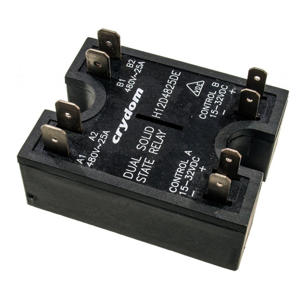 Доставка H12D4825DE , Реле твердотельное для коммутации переменного тока 530В 25А, вход DC 32В 15мА, изоляция 4кВ, схема перехода через ноль, нормально разомкнутое, -40...80°C