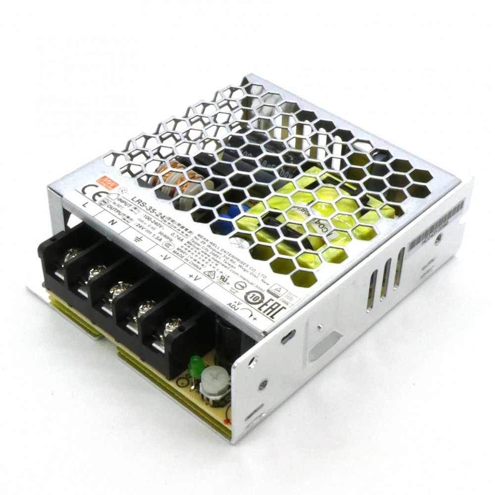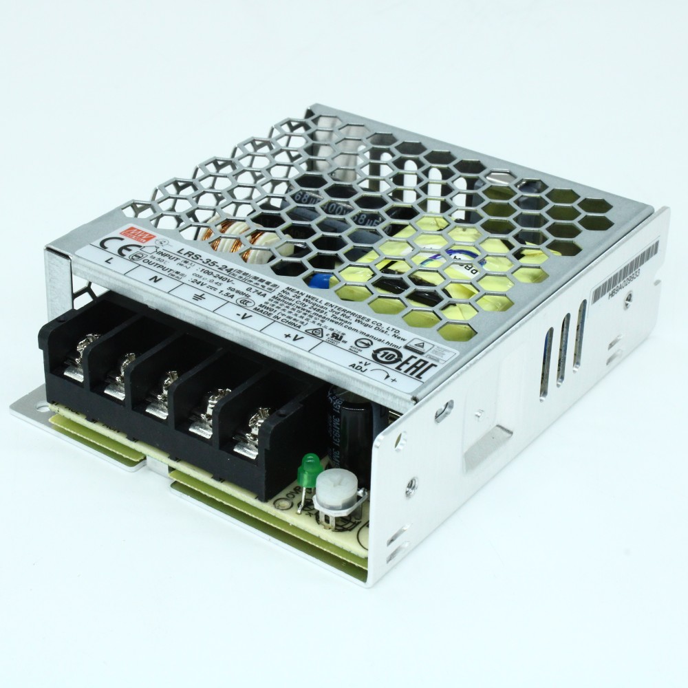 LRS-35-24, AC-DC, 36Вт, вход 85…264В AC, 47…63Гц / 120…370 В DC, выход 24В/1.5A, рег. вых ±10% , изоляция 3750В AC, в кожухе 99х82х30мм, -30…+70°С