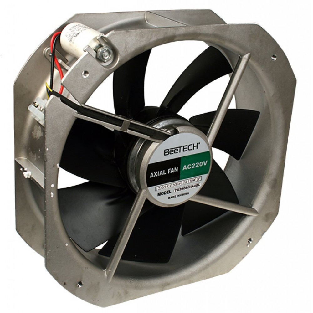 Вентилятор 220В AC, 2400об/мин., 38м3/мин, 280х280х80мм, подшипник качения, тип вывода - провод. Металлические лопасти/пластиковая рама