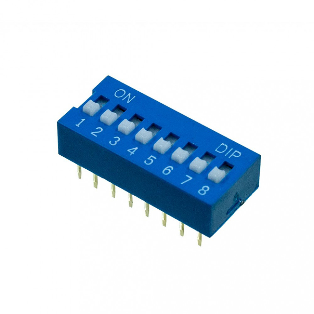 DIP-переключатель 8 групп синий монтаж в отверстие шаг 2.54мм 0.025А 24В с выступающим движком