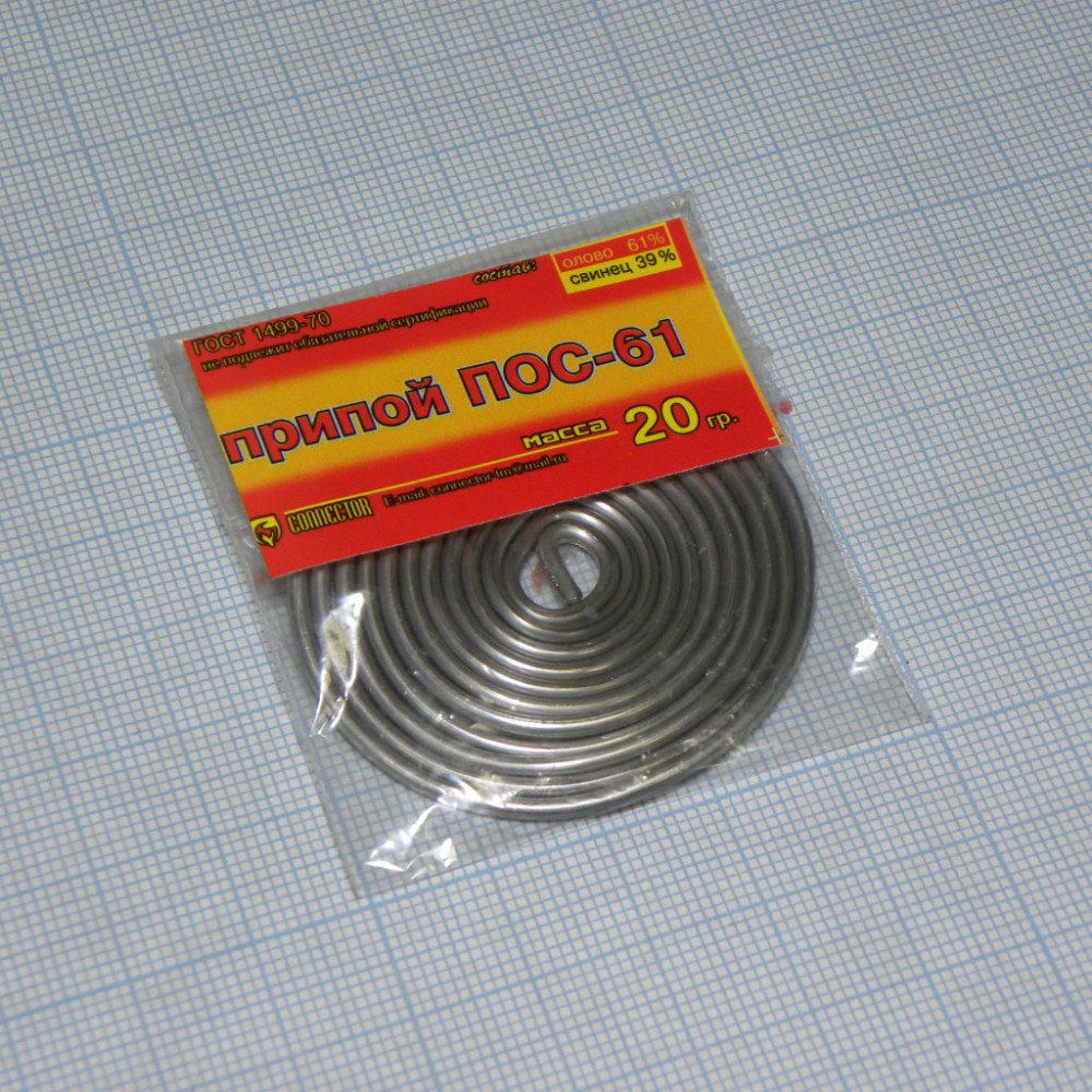 Припой проволочный ПОС-61 без флюса диаметр 1.0мм 1кг катушка