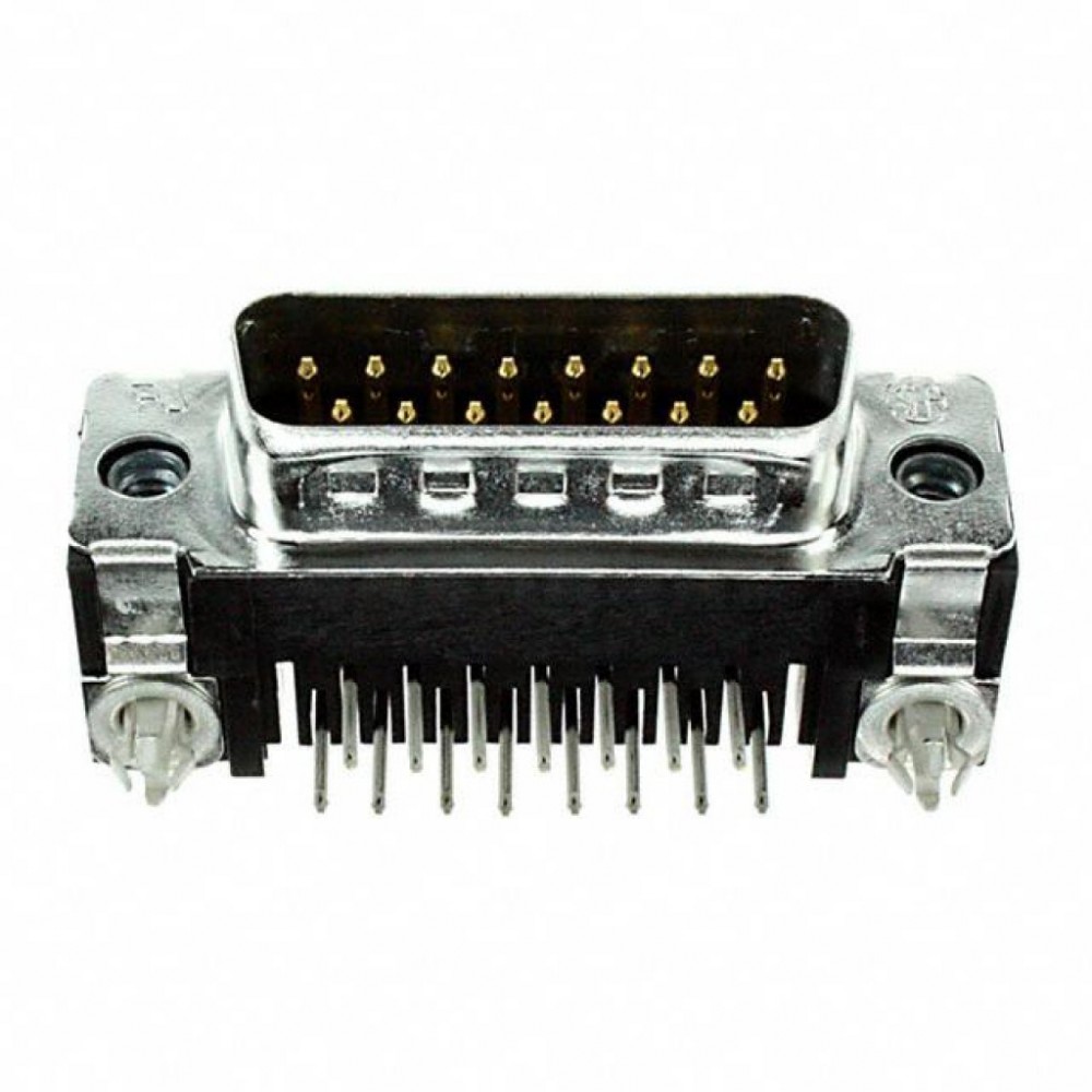 Разъем D-Sub 15 контактов шаг 2.74мм угловой монтаж в отверстие 15 терминалов 1 порт лоток