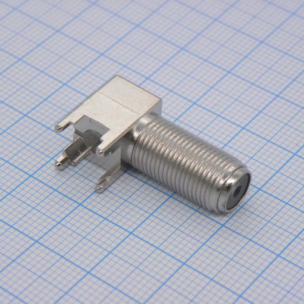 Разъем высокочастотный, F Коаксиальный, Прямоугольное Гнездо, Обжимной, 75 Ом, Фосфористая Бронза