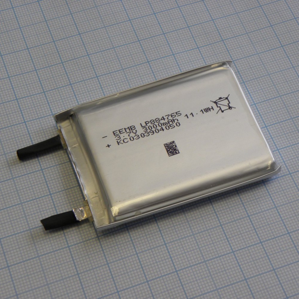 Доставка LP884765 , Li, Pol аккумулятор типоразмера призма, 3.7В, 3Ач, , провода приваренные к выводам, -20...60 °C