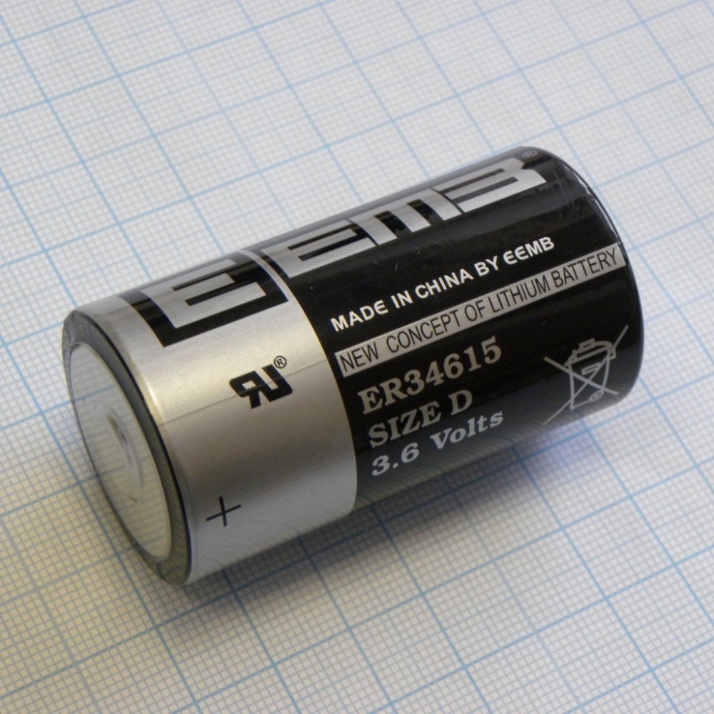 ER34615 3.6V, Li, SOCl2 батарея типоразмера D, 3.6 В, 19 Ач, стандартная форма, -55...85 °C