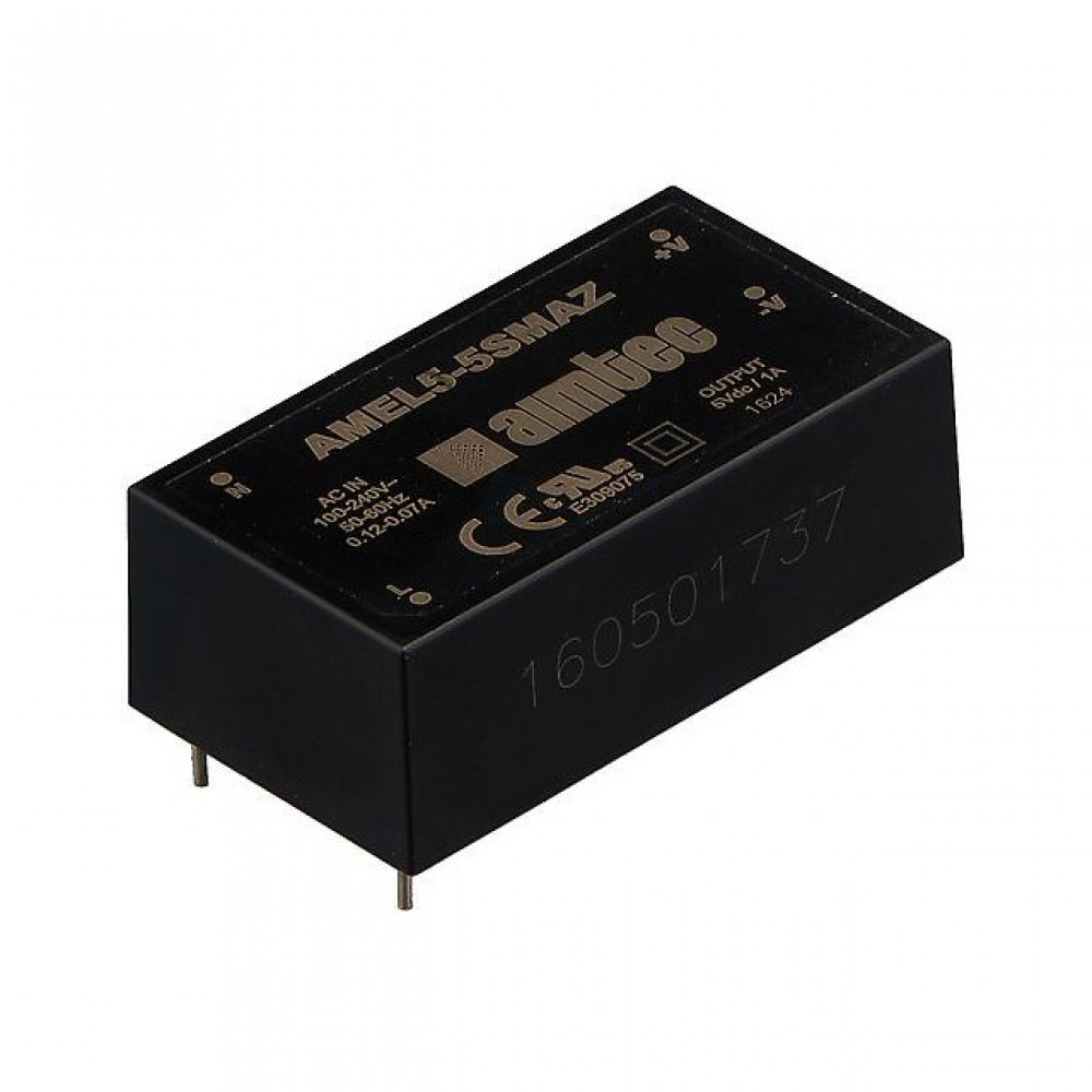 AMEL5-5SEMAZ, AC/DC, 5Вт, вход 90…264В, выход 5В/1А, изоляция 4000В AC, КПД 74%, максимальная емкостная нагрузка не более 1100мкФ, 51.5x28x17.8мм, -40…80°C, пластик