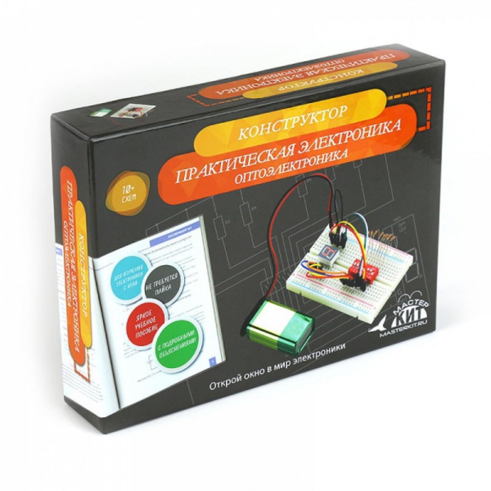 Доставка NR08 , Конструктор "Оптоэлектроника" Учебное пособие, в котором доступным для ребенка языком описаны принципы работы оптоэлектронных компонентов электрических схем