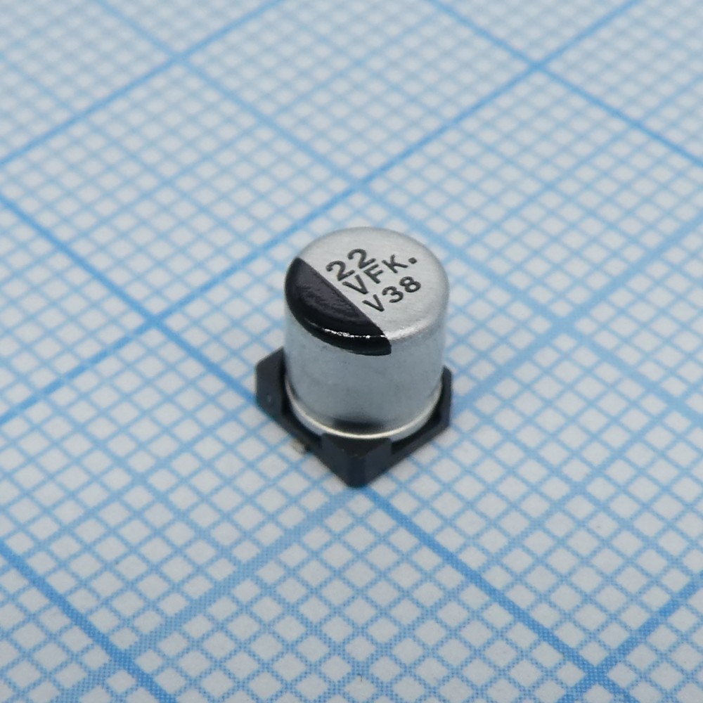 Конденсатор электролитический низкоимпедансный для поверхностного монтажа 35В 22мкФ ±20%, 160mA, 2000часов, 5*5.8