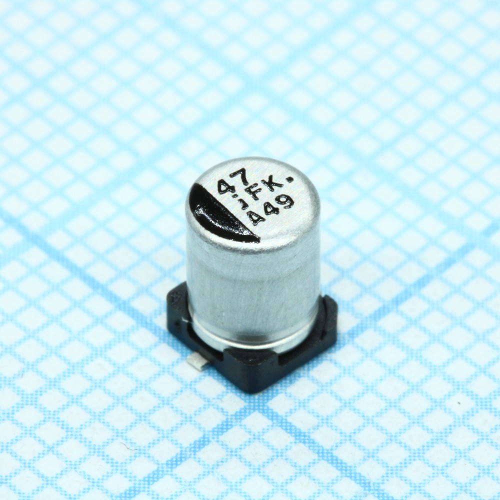 конденсатор электролитический низкоимпедансный 47мкФ 6.3В 20% 90мА 2000h SMD 4x5.8мм