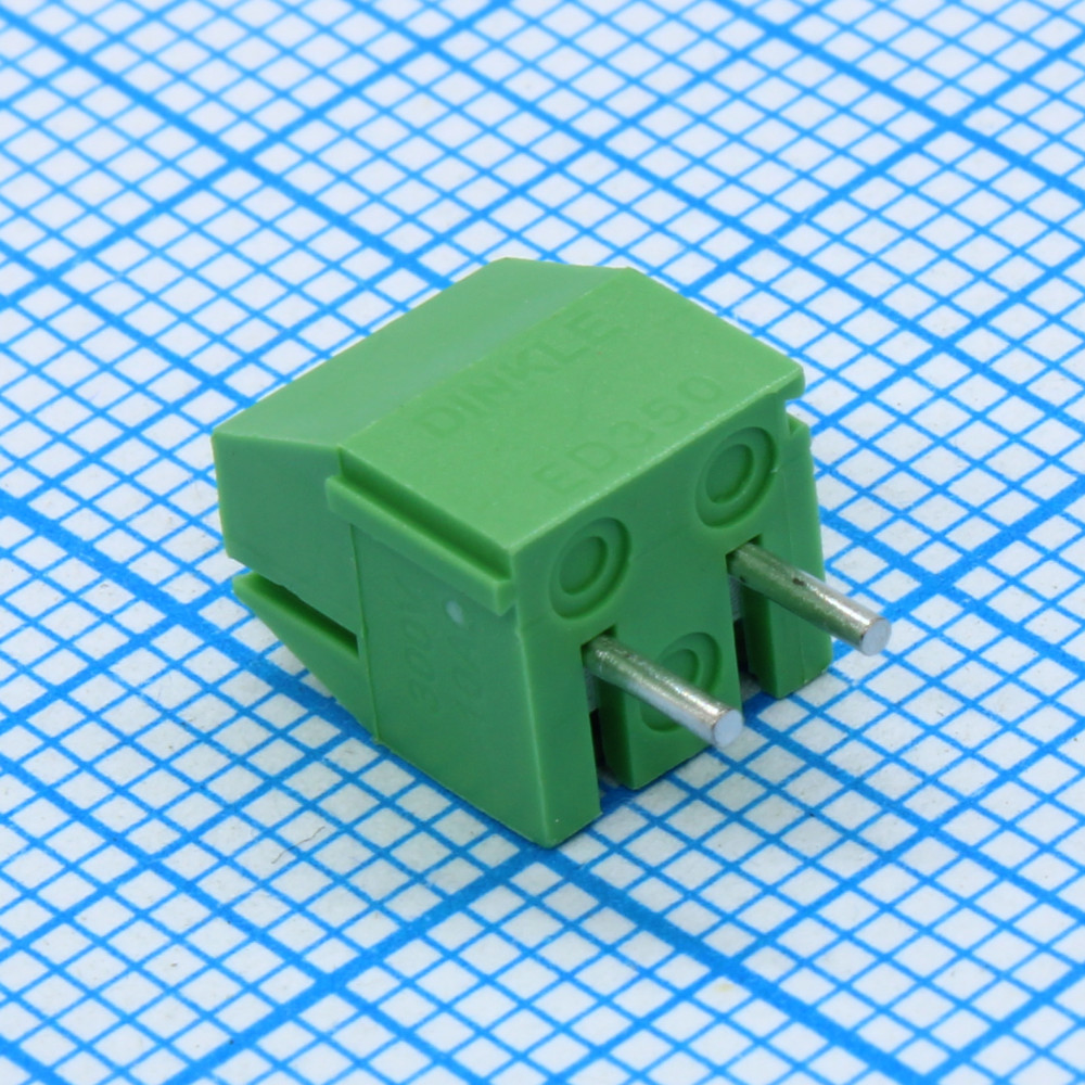 ED350V-02P, Клеммник 2 конт. шаг 3.50 мм модульный, вертик. на плату, H = 8.4 мм, пров. 24-16AWG/ до 1.5 кв.мм, до 300В/10А, зеленый изол. (аналог DG350-3.5-02P-14*/ MA212-350M02*)