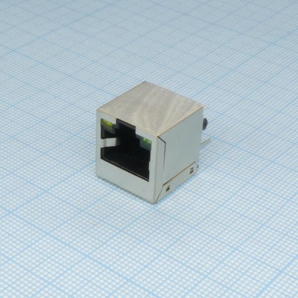 Разъем экран. "гнездо" RJ-45, 2 светодиод. (зеленый/ желтый), без лепестк., вертик. на плату, -40...+85°С, H = 16.3 мм (аналог 1734577-1*)