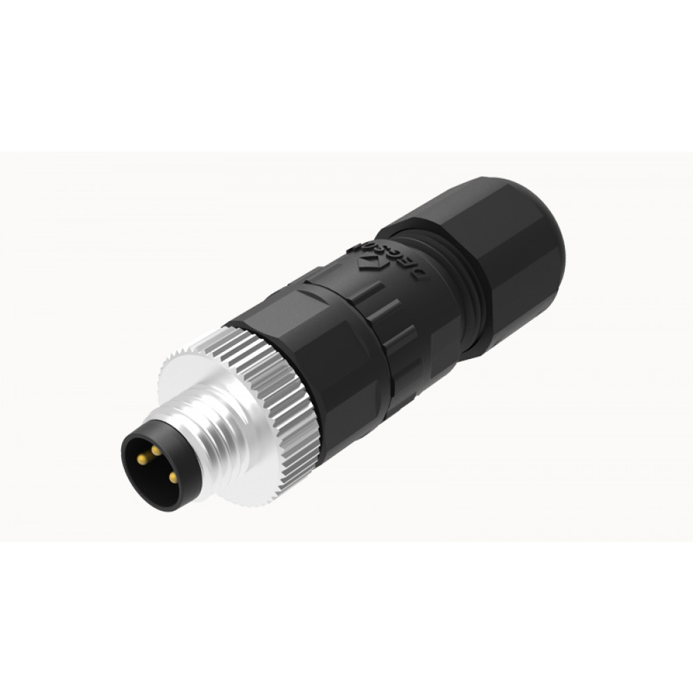 Вилочный разъем на кабель, 3 полюса, M8, прямой, винтовая фиксация провода, A-Code, диаметр кабеля 4,0-6,0 мм, сечение 0.25-0.34 мм кв., 3А, 60V, пластик