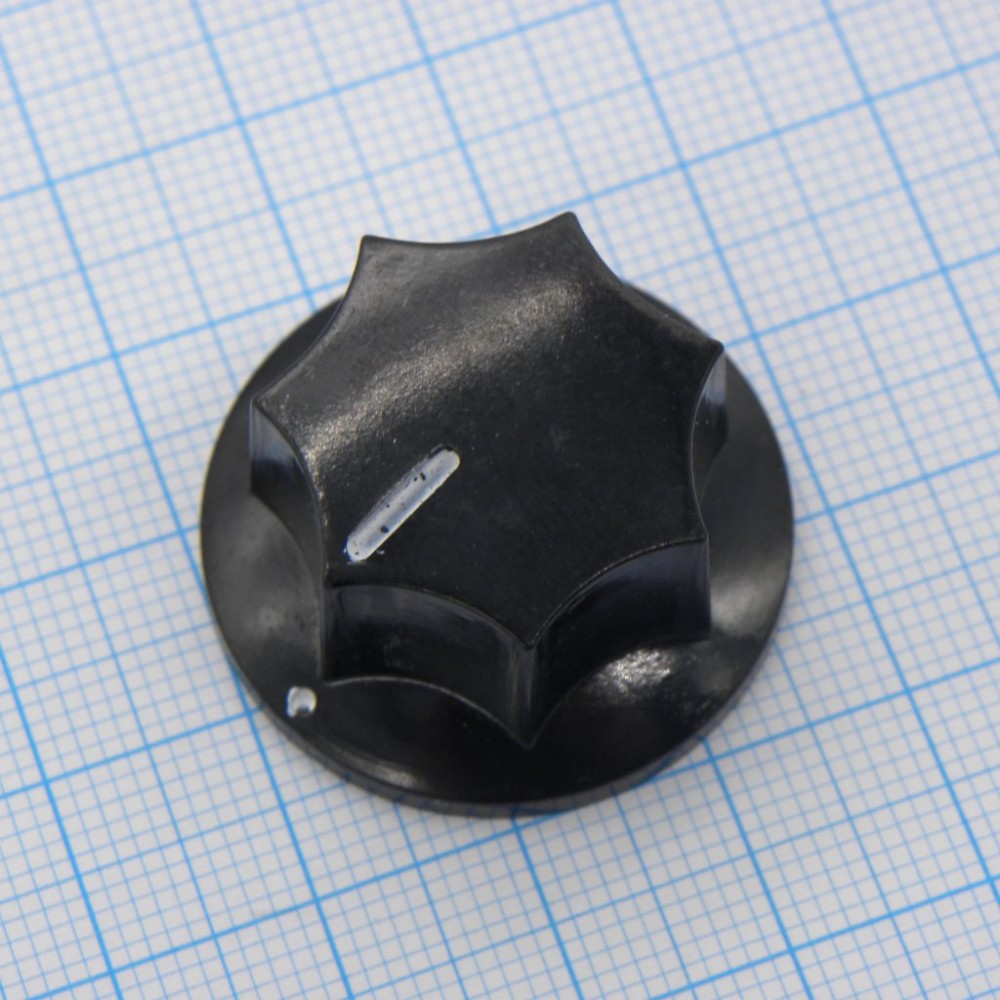 Доставка Ручка MF-B02 чёрная, d=6.4 мм, с винтом , Ручка управления на вал 6.4 мм, мет. втулка с винтом, чёрная, h=16, D=29, семиграниик с фланцем.