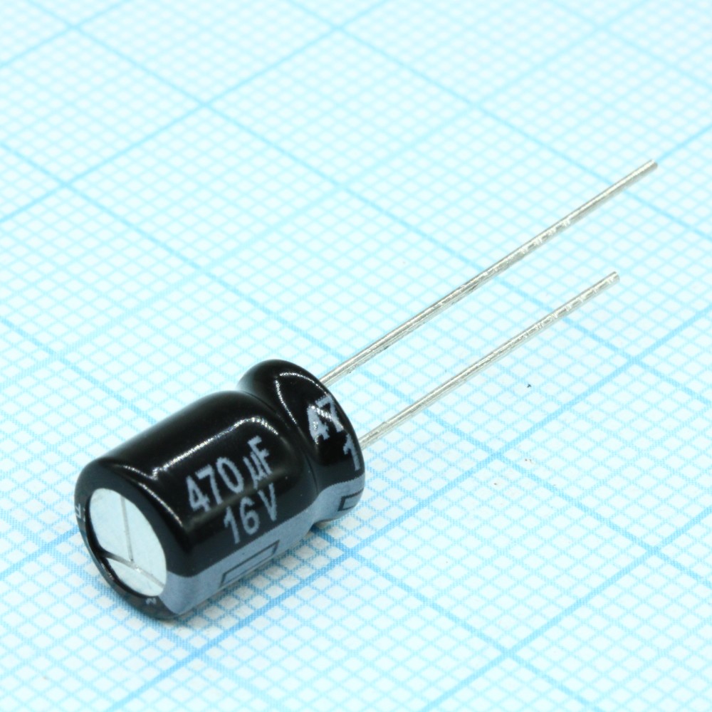 Конденсатор алюминиевый электролитический 470мкФ 16В ±20% (8 х 12мм) радиальные выводы 2.5мм 210мА 2000час 105°С россыпь