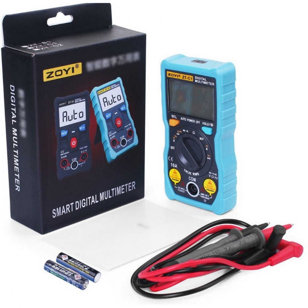 ZT-C1, Компактный мультиметр, 4000 отсчетов, True-RMS, датчик NCV, автоматический выбор пределов,защита от перегрузки до 550 вольт на любом пределе,фонарик ,резиновый бампер.
