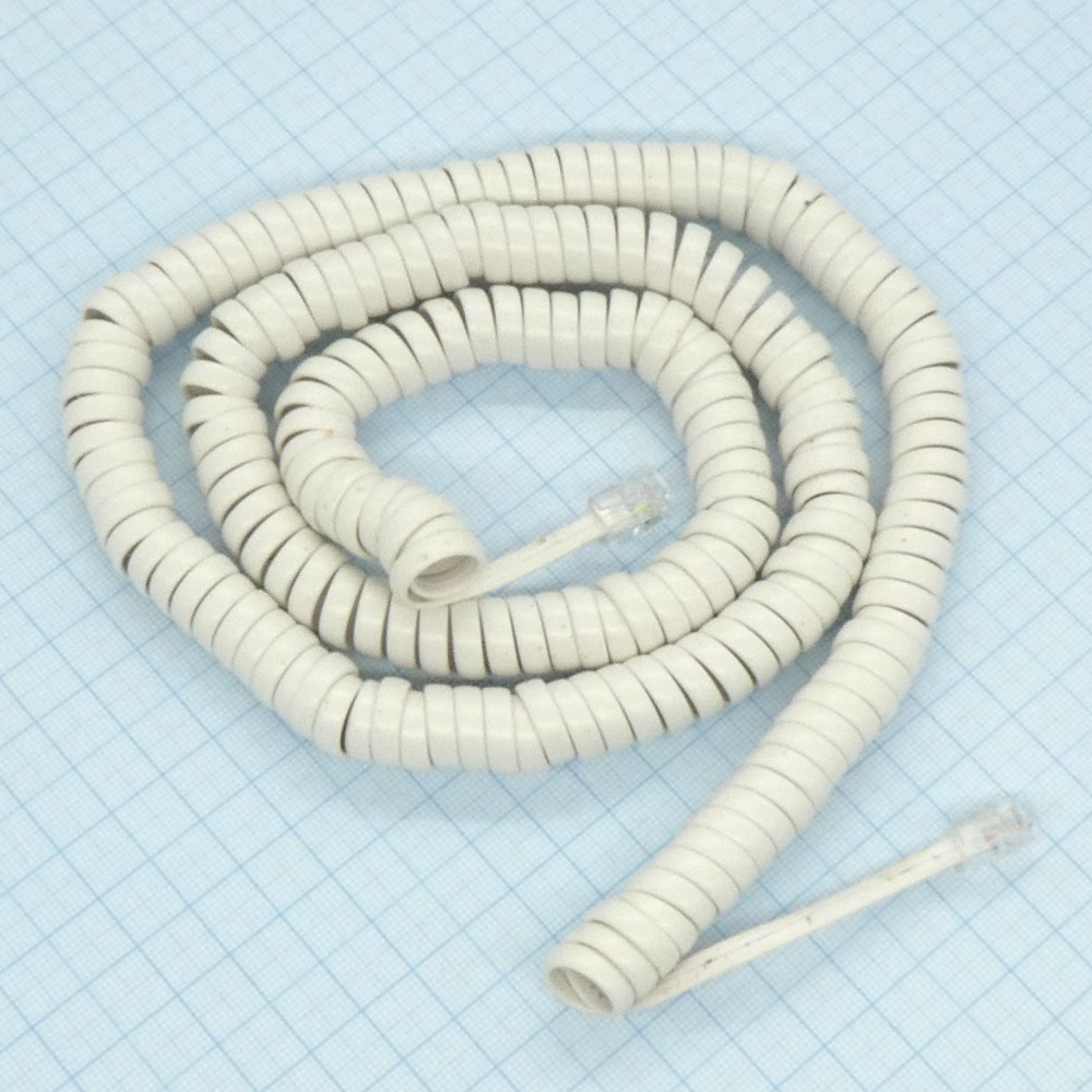 Шнур телефонный витой 7.0м белый, Шнур подключения телефонного аппарата к трубке витой 7м белый