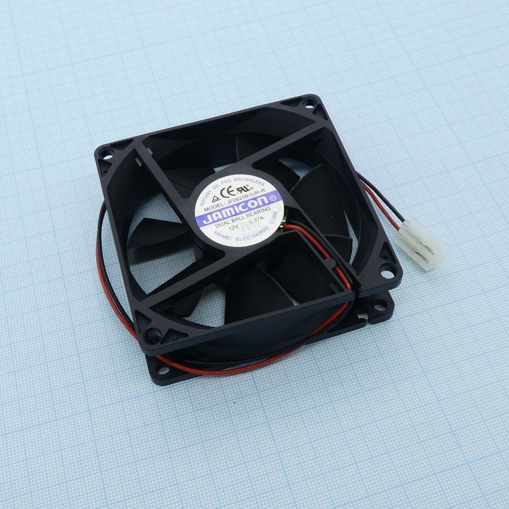 Доставка JF0825B1UR-C , Вентилятор 12В 80х80х25мм, B 4000об/мин., 88.2м3/час, 40дБ, двойной подшипник качения, тип вывода - провод с разъемом
