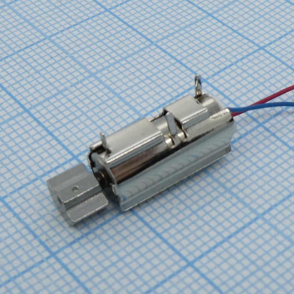 Электродвигатель с клипсой на плату, 9000 об/мин., 1.3В, 6х20,7мм, вибромотор