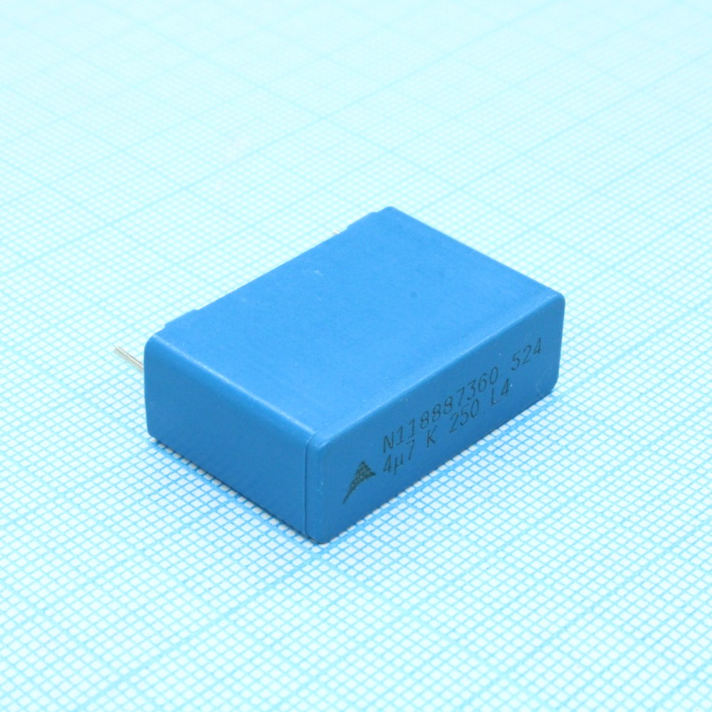 Конденсатор металлоплёночный полиэтилентерефталатный 4.7мкФ 250В ±10%( 31.5х11х21мм) шаг выводов 27.5мм 125°С автомобильного применения россыпь