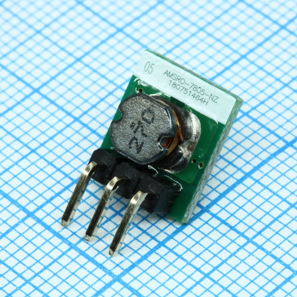 AMSRO-7805-NZ, DC/DC, 2.5Вт, вход 6.5…36В, выход 5В/0.5А, без гальваноразвязки, КПД 84…90%, максимальная емкостная нагрузка не более 680мкФ, SIP3, 10x7.2x11мм, -40…85°C, открытое исполнение