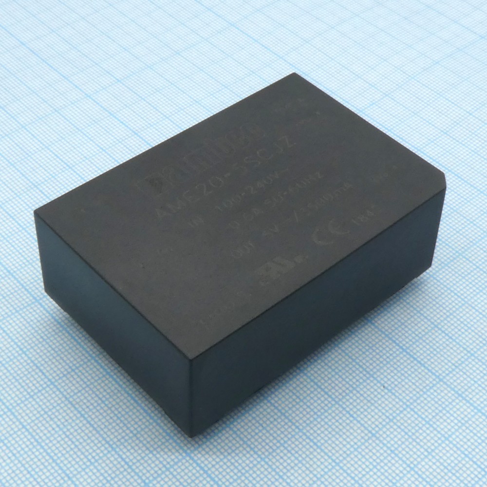 AME20-5SCJZ, AC/DC, 20Вт, вход 85…264В, выход 5В/3.5А, изоляция 3000В AC, КПД 78%, максимальная емкостная нагрузка не более 12240мкФ, 70x48x23.5мм, -25…70°C, пластик