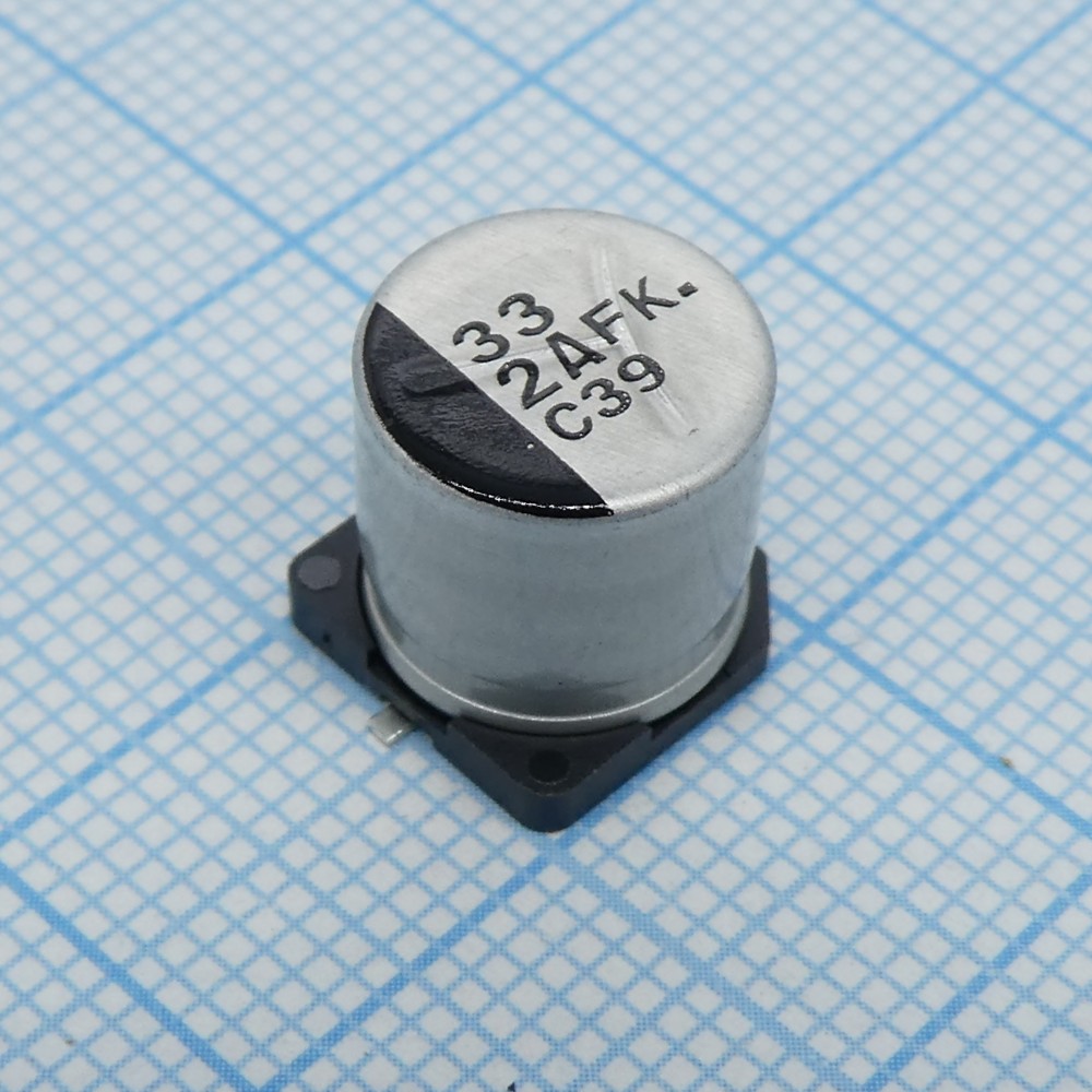 Конденсатор алюминиевый электролитический 33мкФ 100В ±20% (10 X 10.2мм) для поверхностного монтажа 200мА 2000час 105°С автомобильного применения лента на катушке