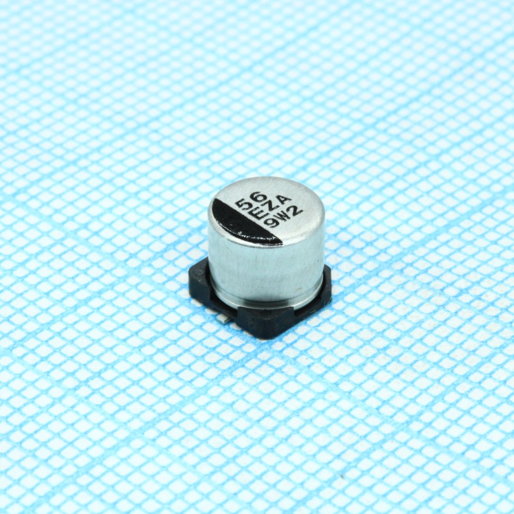 Полимерный гибридный алюминиевый конденсатор 56мкФ 25В ±20% (6.3 X 5.8мм) для поверностного монтажа 0.05Ом 1300мА 10000час 105°C автомобильного применения